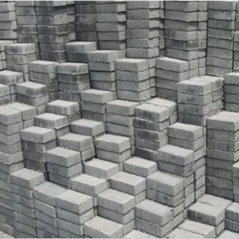 Paving block berbentuk bata dengan permukaan rata dan cocok untuk area pejalan kaki.
